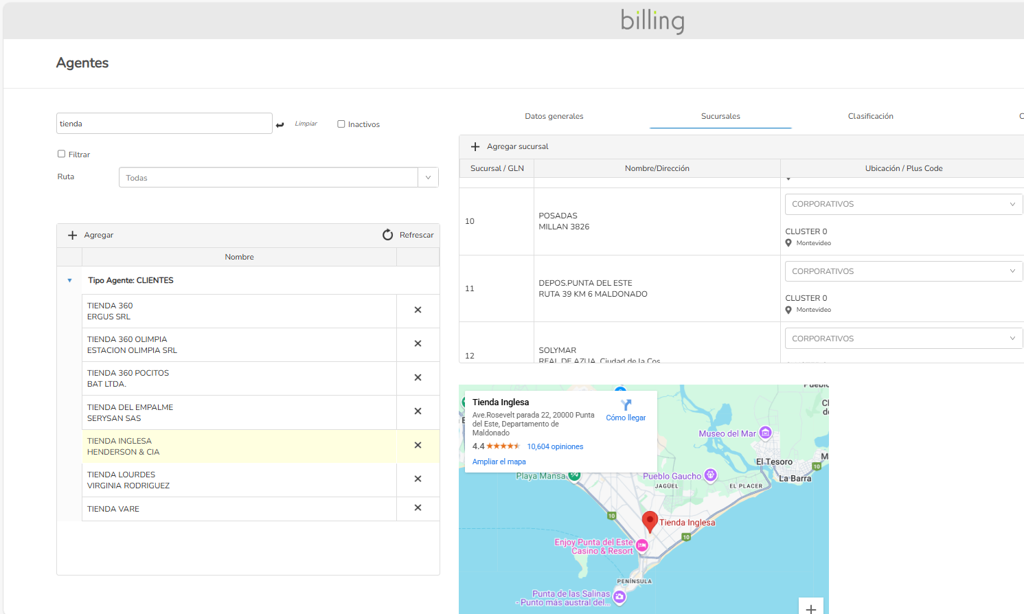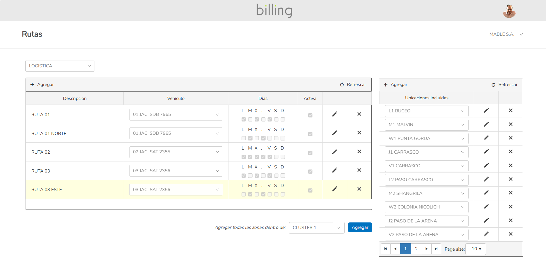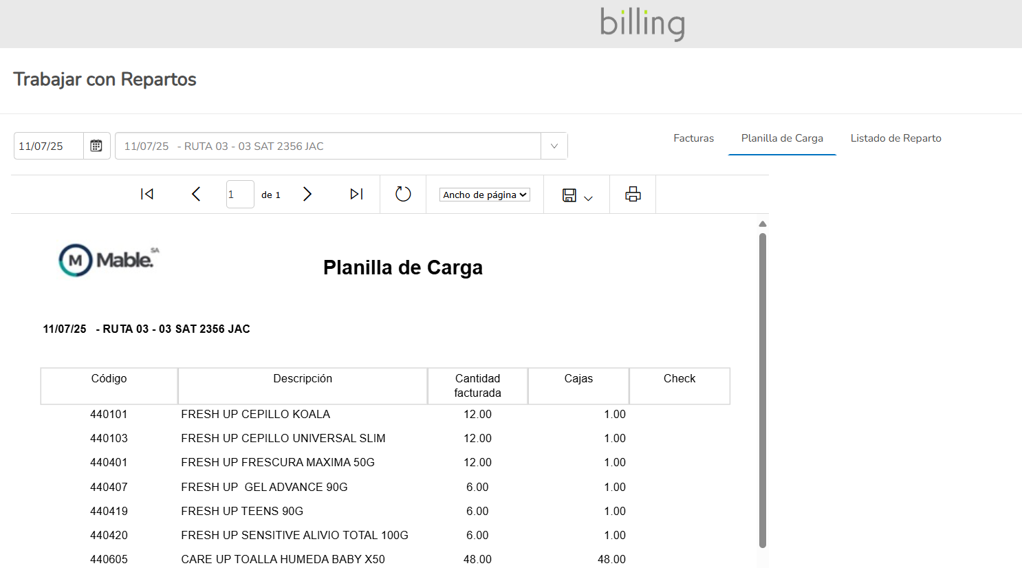 Gestión de rutas. Asignación dinámica de facturas a repartos. Planillas de carga y listados de reparto. Geolocalización de puntos de entrega.
