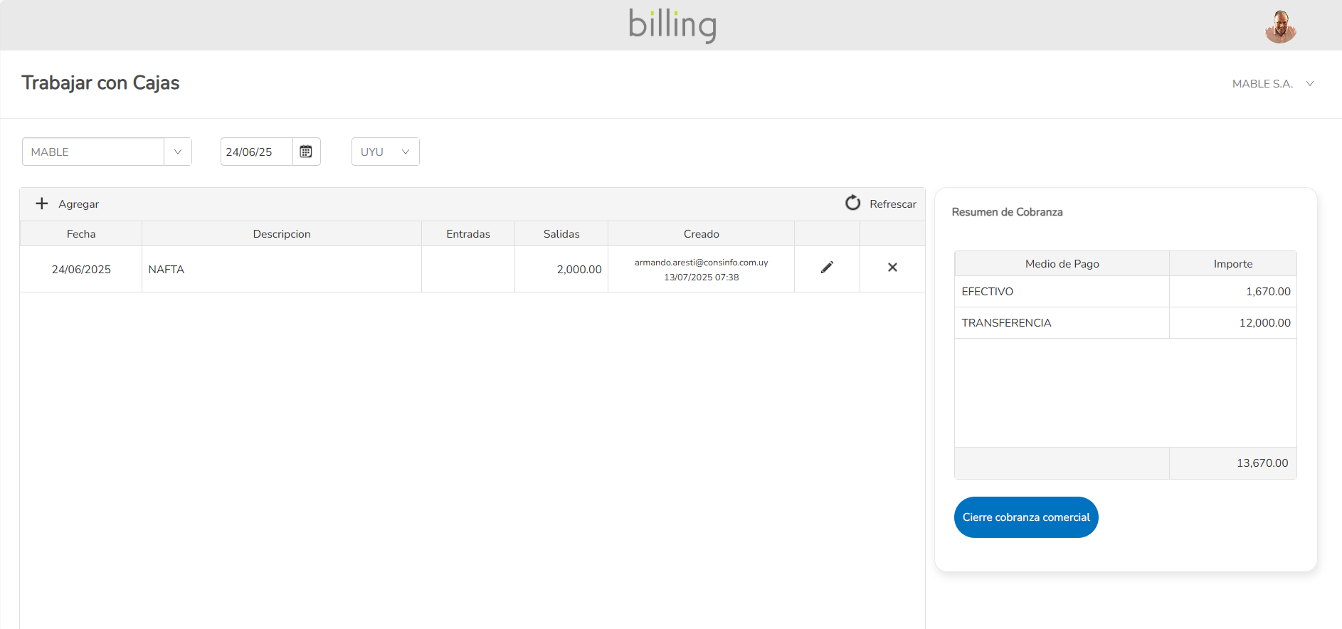 Mútiples cajas. Registro de cobranzas y cierres de caja