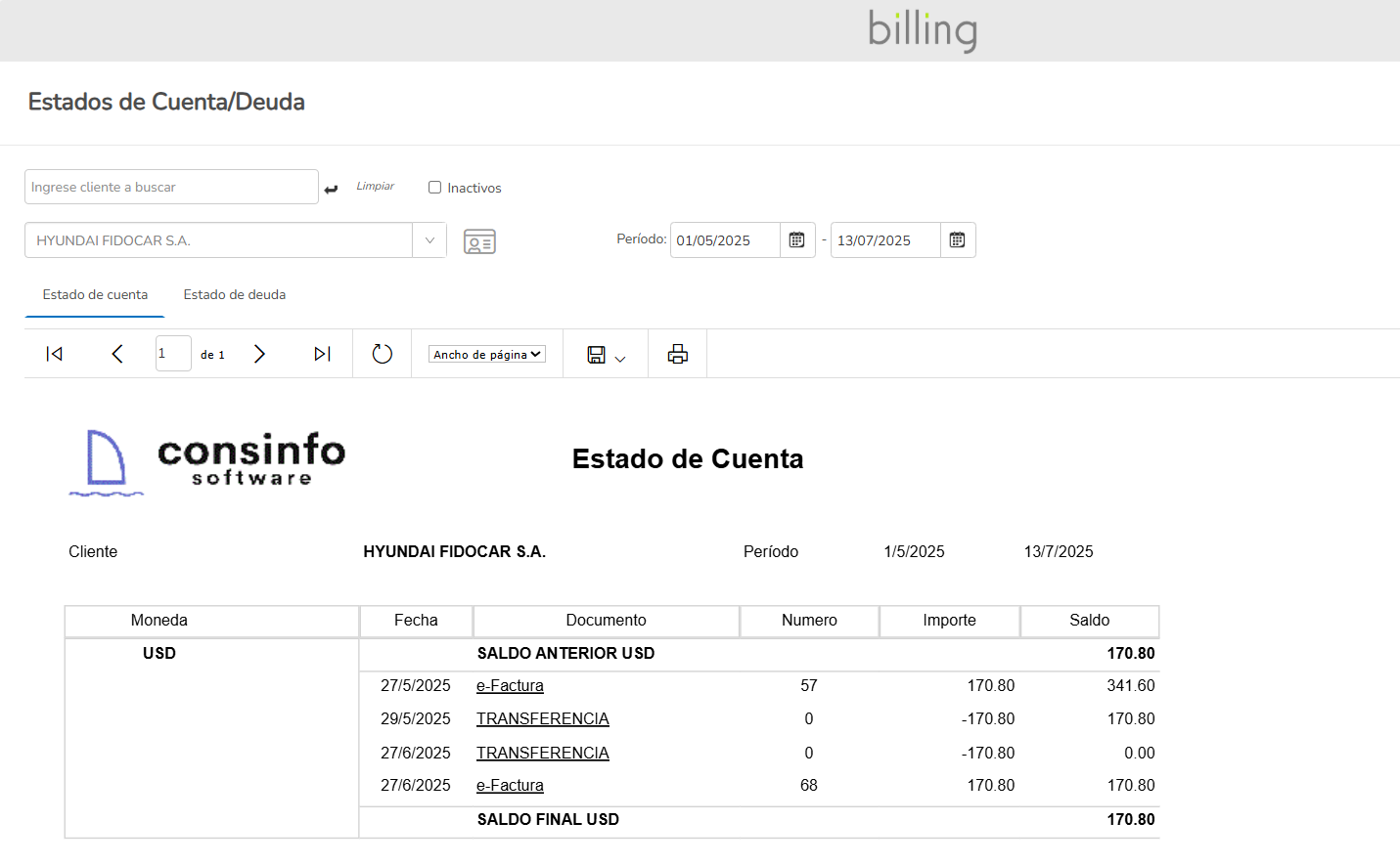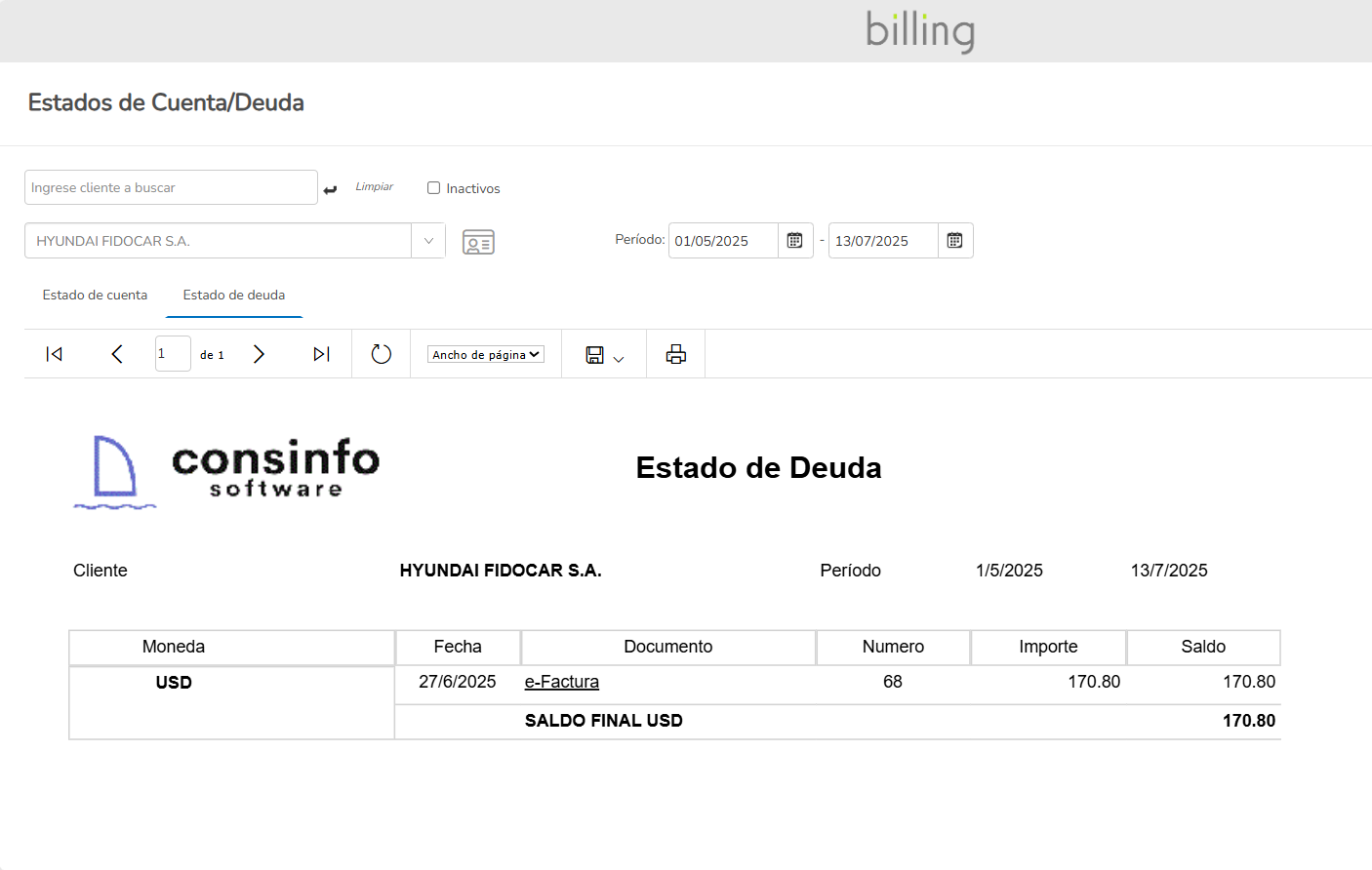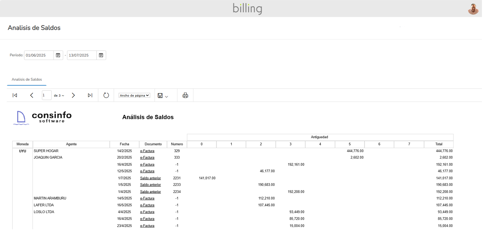 Estados de cuenta y deuda por cliente. Análisis de Saldos vencidos o a vencer.