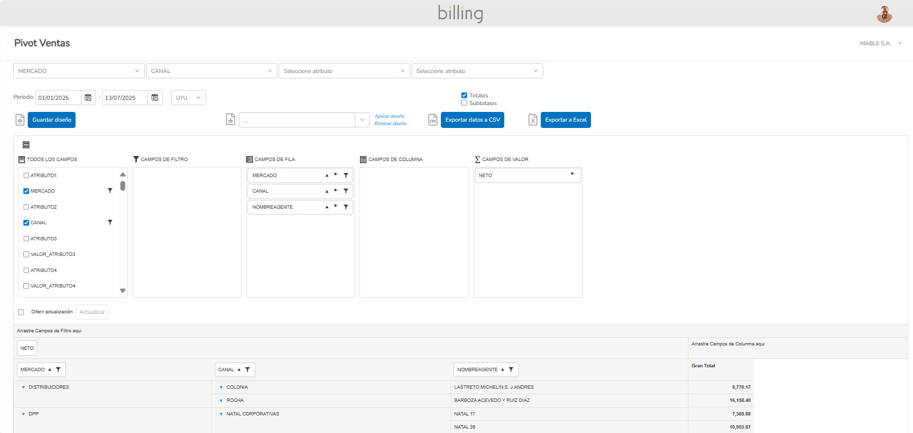 Reportes por producto, cliente o período. Pivot de Ventas para análisis BI.