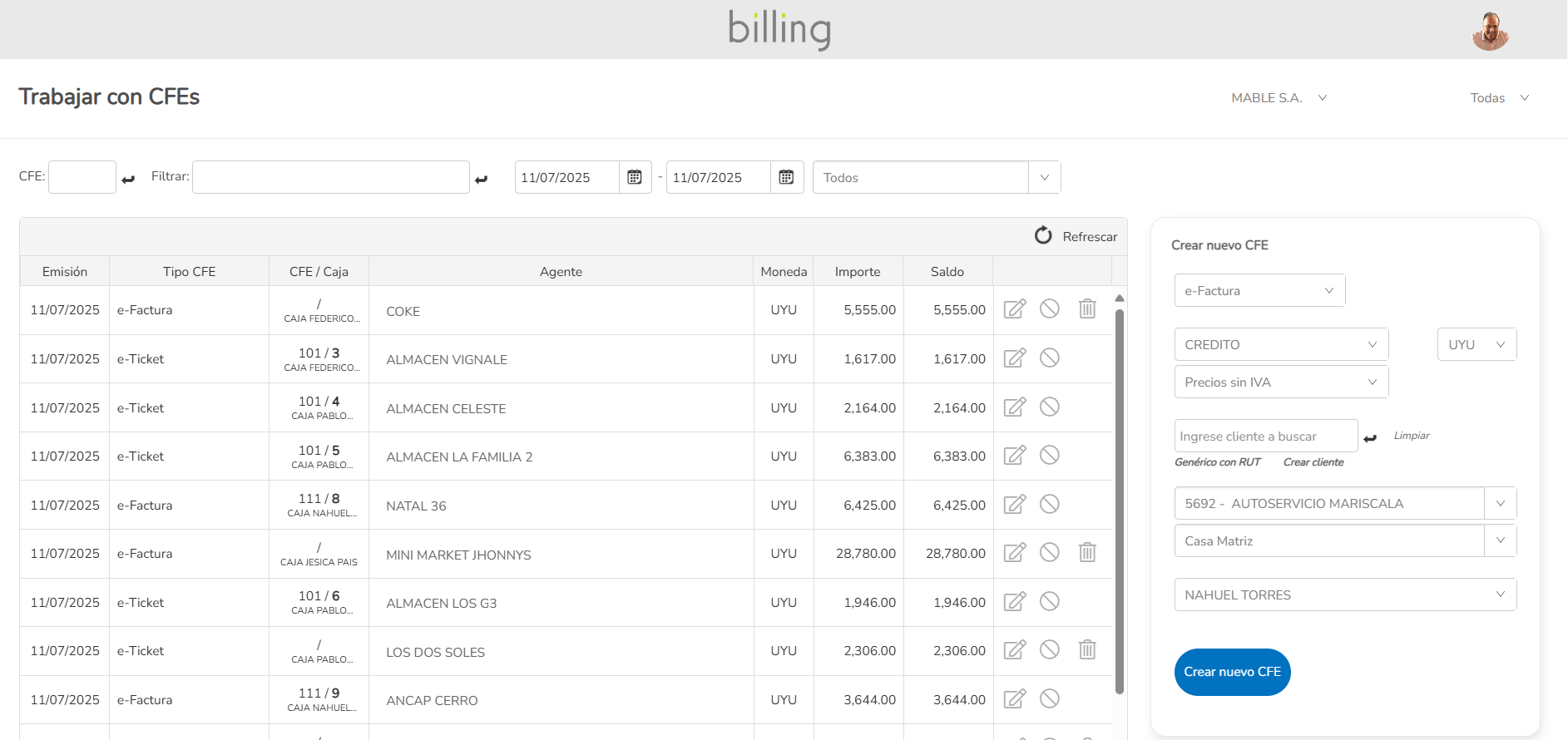 Emisión rápida y flexible de comprobantes. Acceso según perfil de usuario. Visualización del CFE instantánea, envío por email disponible.