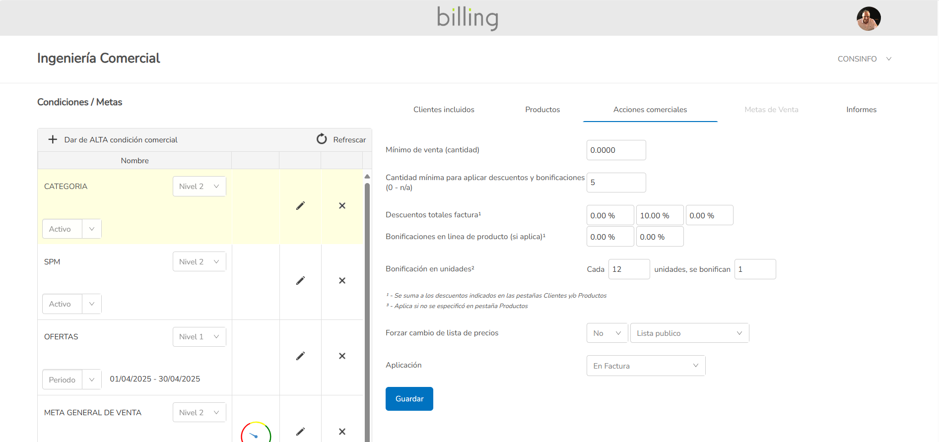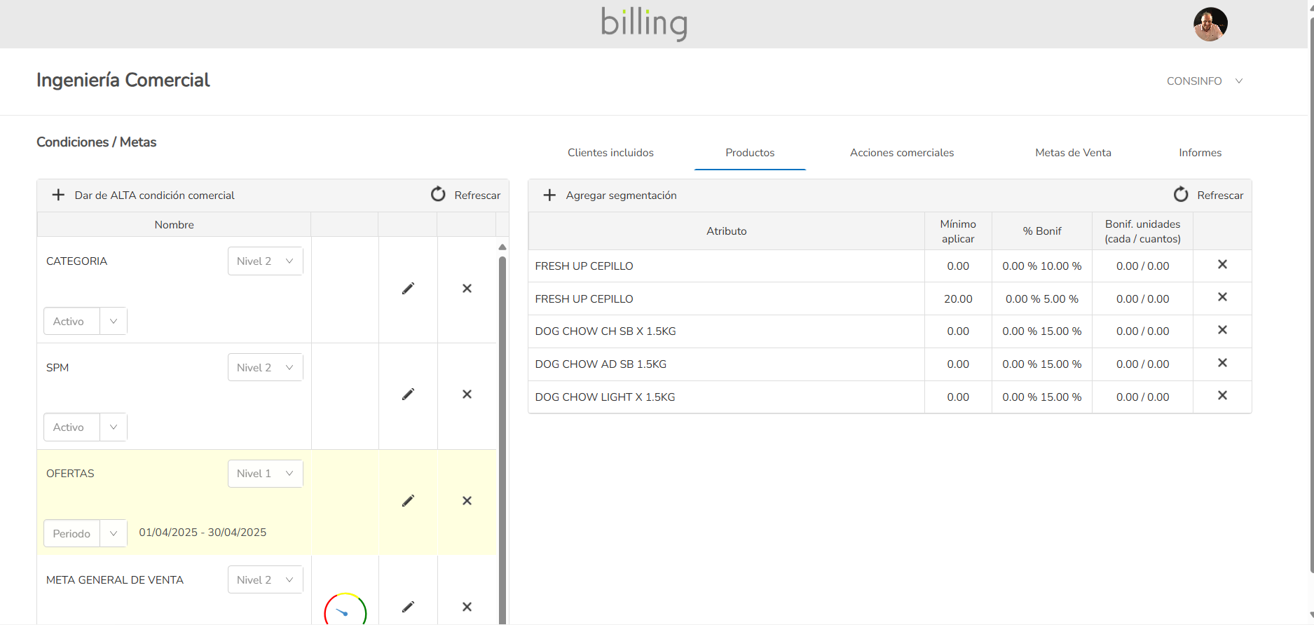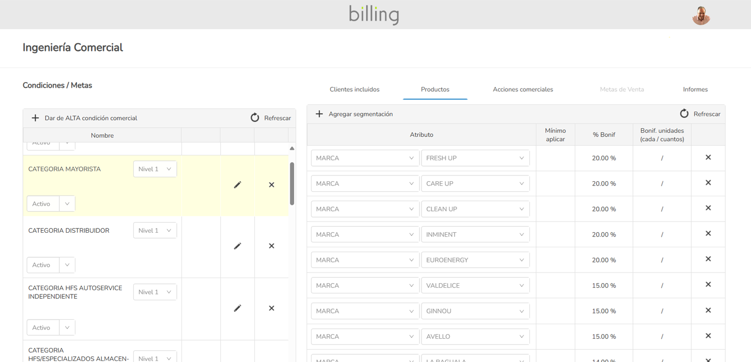 Descuentos, promociones, bonificaciones y precios, definidos en base a criterios de segmentación definidos por el usuario.