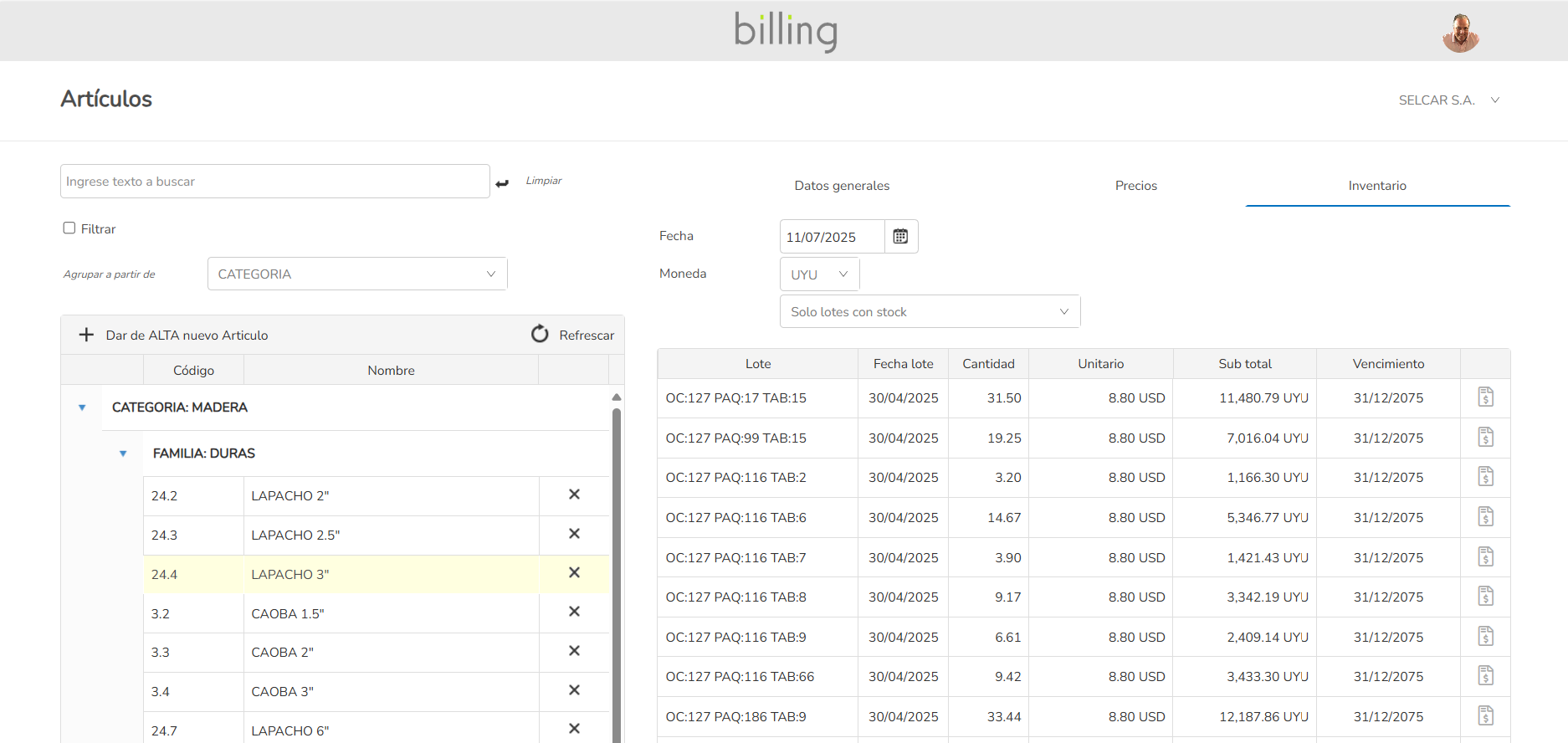 Gestión de stock en tiempo real, múltiples depósitos, gestión de lotes, costos FIFO.